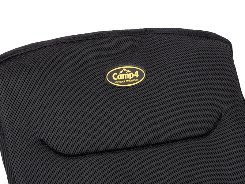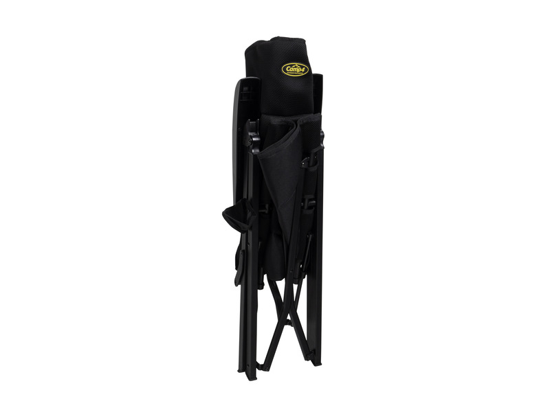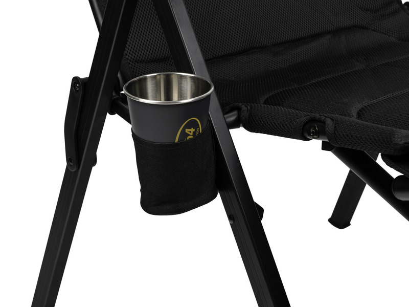 Materiaali on yläosassa hengittävää verkkokangasta ja alaosassa kestävää polyesteriä, runko on mustaksi pinnoitettua alumiinia. Tämä taitettava tuoli kestää enintään 120 kg:n painon ja siinä on lisäominaisuutena kätevä mukinpidin. Toimitus sisältää kätevän säilytyspussin.