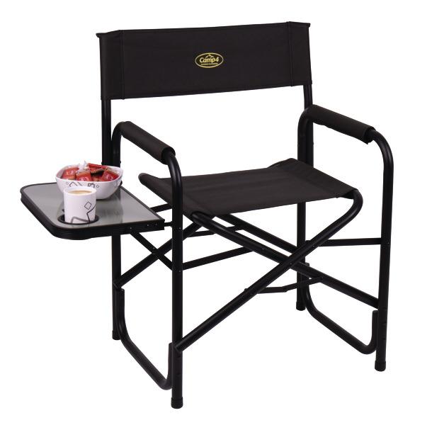 Kompakti Maxi DeLuxe Black -ohjaajan tuoli sivupöydällä on hyväksi havaittu ja testattu kumppani. Siinä on musta runko ja pehmustetut käsinojat. Sivupöydässä on käytännöllinen syvennys kuppeja, mukeja ja pulloja varten. Tuoli voidaan säilyttää pienessä tilassa, ja siinä on turvallinen taittomekanismi.