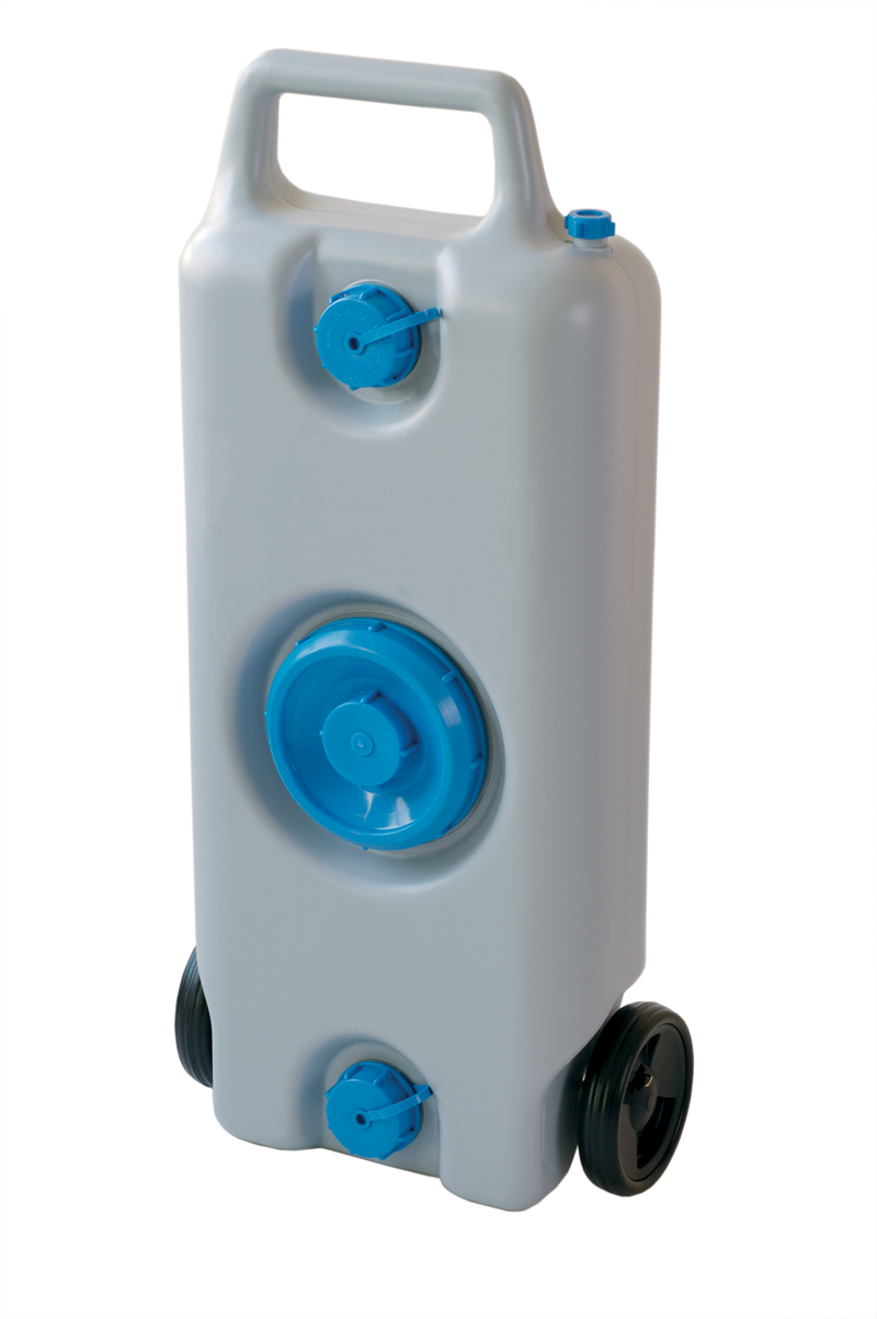 Jämäkkä pyörillä ja vetokahvalla varustettu jätevesitankki matkailuajoneuvon kiinteän jätevesisäiliön tyhjennykseen tai ajoneuvon alle sijoitettavaksi, jos kiinteää säiliötä ei ole. Säiliön mukana tulee kätevä työkalu, jolla korkit on helppo avata. Täyttöputki 50 cm letkulla tilattava tarvittaessa erikseen.